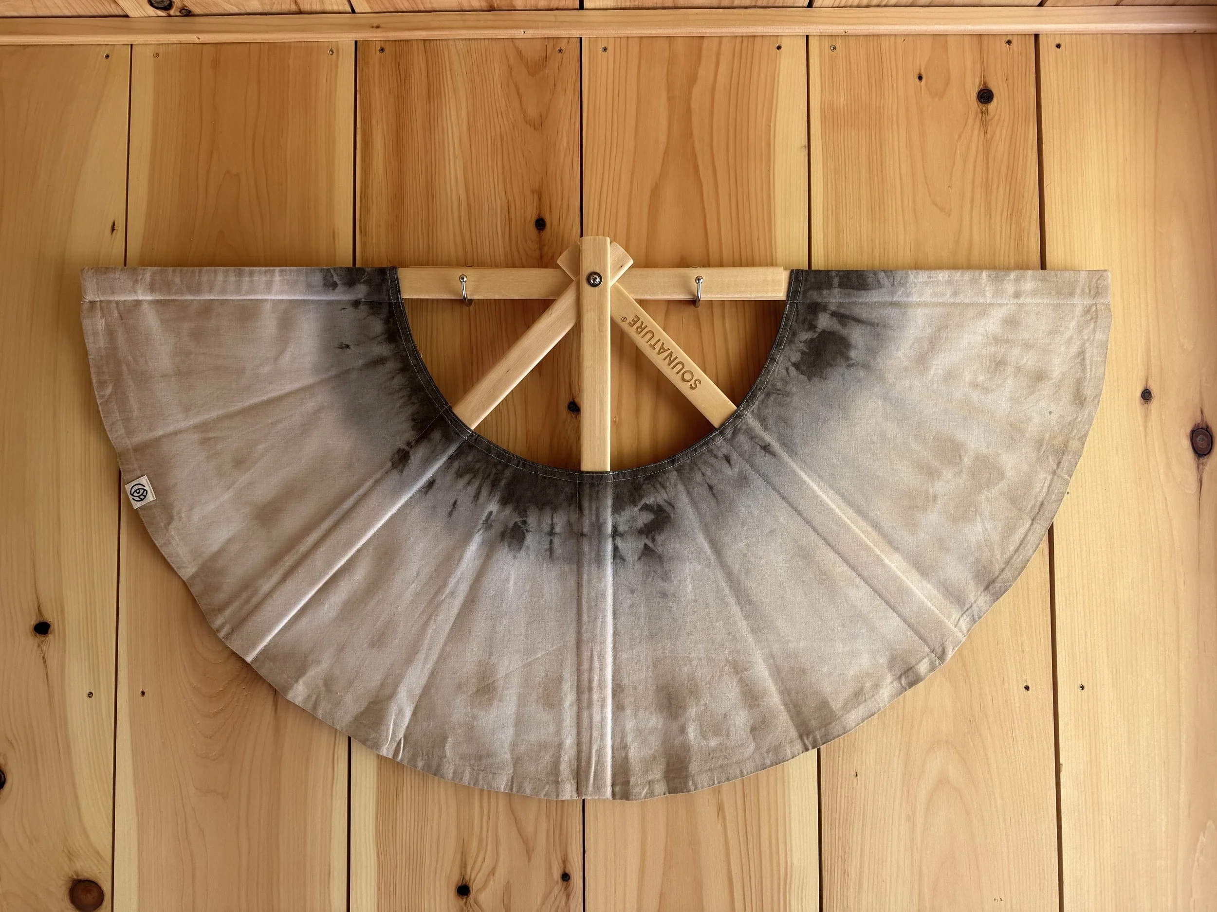 We use a handcrafted cotton and wooden sauna fan dyed with plants, traditionally used in European Aufguss rituals, to gently guide heat and scent through the space. Rather than adding more heat, the fan moves the warm air already present, helping steam circulate more evenly throughout the sauna. This allows guests to experience waves of warmth and aroma in a more intentional, controlled way. The movement is slow, deliberate, and rhythmic. Many people find it grounding and calming, while others enjoy the sensation of heat arriving and passing, rather than staying static.